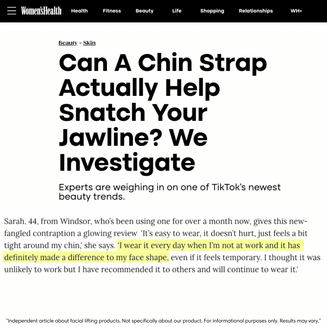 Our strap works along your jaw to create a clean, defined line. This lifting action shows off your natural bone structure and creates that coveted V-shape that looks great in photos and real life.
